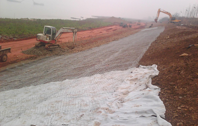 雷諾護墊是指金屬網(wǎng)面構(gòu)成的厚度遠小于長度和寬度的墊形工程構(gòu)件,其中裝入塊石等填充料后連接成一體,成為主要用于水利堤防、岸坡、海曼等的防沖刷結(jié)構(gòu),具有柔性、對地基適應(yīng)性的優(yōu)點。雷諾護墊是厚度在0.17-0.3m(含0.3m)的網(wǎng)墊結(jié)構(gòu)。主要用作河道、岸坡、路基邊坡護坡結(jié)構(gòu)。既可防止河岸遭水流、風浪侵襲而破壞,又實現(xiàn)了水體與坡下土體間的自然對流交換功能,達到生態(tài)平衡。坡上植綠可增添景觀、綠化效果。我公司生產(chǎn)的雷諾護墊由隔板分成若干單元格,為了加強雷諾護墊結(jié)構(gòu)的強度,所有的面板邊端均采用直徑更大的鋼絲。